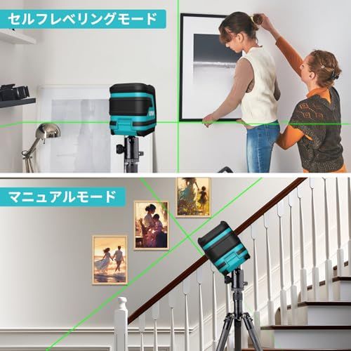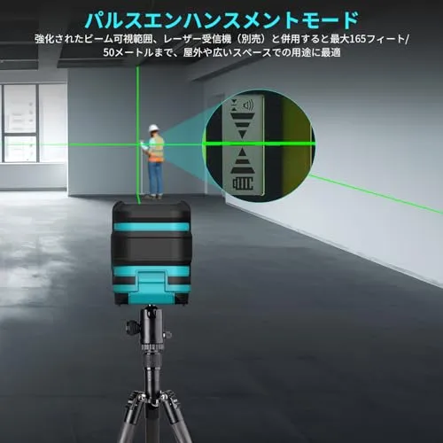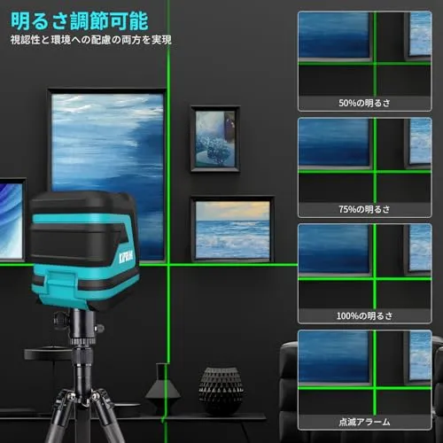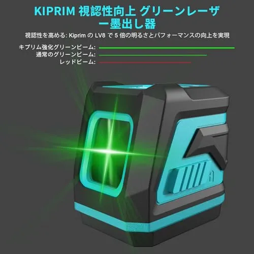 Kiprim レーザー墨出し器 墨出しレーザー 視認性向上、明るさ調整可能、手動/自動水平/パルスモード、レーザー安全基準:クラス2 電池とキャリングポーチ付属 日本語説明書付き LV8