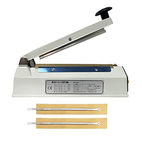 【製品仕様】ホワイトメタルボディシーラー、プラスチックと比較して、より良い質感と耐久性、シールの長さ:200MM、シール幅:5MM、重量:1.25キロ、セットが含まれています:1本体、2スペア電熱キットとマニュアル1。