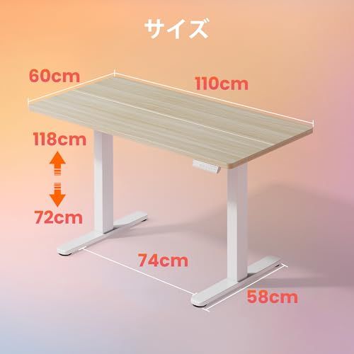 【ワークスタイルをもっと自由に】一日中、同じ姿勢でデスクに向かっていませんか?電動昇降デスクは、高さを72118cmまでシーンに合わせた高さに調節可能。 集中したい時はスタンディングで気分をリフレッシュし、落ち着いて作業したい時はシッティングで。「坐りっぱなし」による身体の疲れを軽減し、在宅ワークの生産性と快適さをアップしよう。