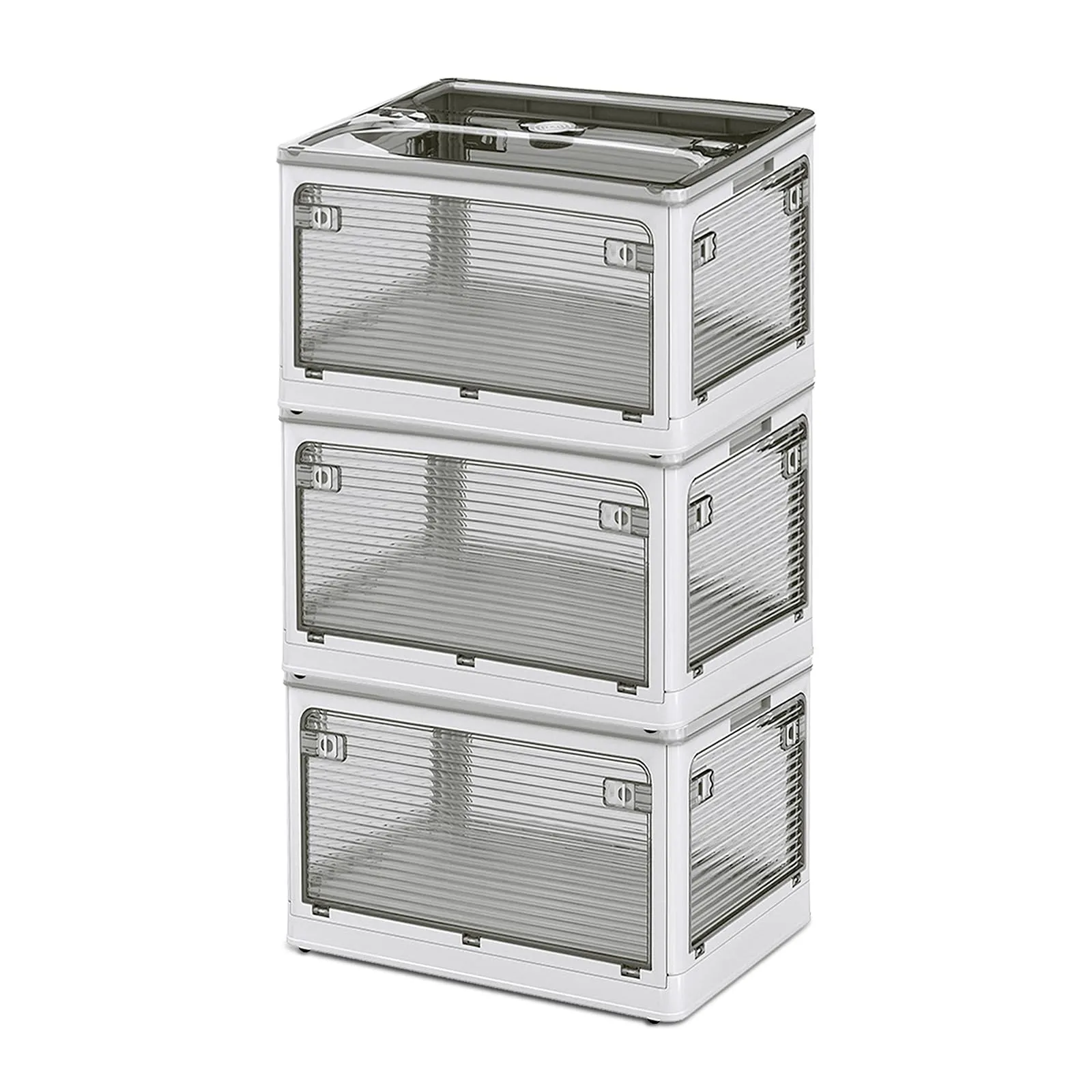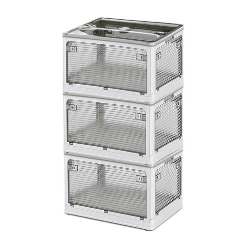 【5面全方向オープン設計】前後左右天面の5方向から自由にアクセス可能な収納ボックス。衣類・漫画・ぬいぐるみ収納時に詰め込み順を気にせずポイポイ収納可能。従来型の片面開口ケースと違い、積み重ね状態でも下段の物が簡単に取り出せる三段ボックス構造。家庭用クローゼットから車内収納まで幅広く活用できる大容量デザインです。