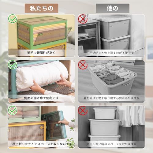 収納ボックス 折り畳み 積み重ね 蓋付き収納ボックス キャスター付き 全方向から取り出せる 大容量 三段ボックス 車用 収納ケース 衣類 布団 小物 おしゃれ コンテナ ボックス ぬいぐるみ 収納 折りたたみコンテナ 漫画 収納箱 収納用品 無臭 透明 防湿