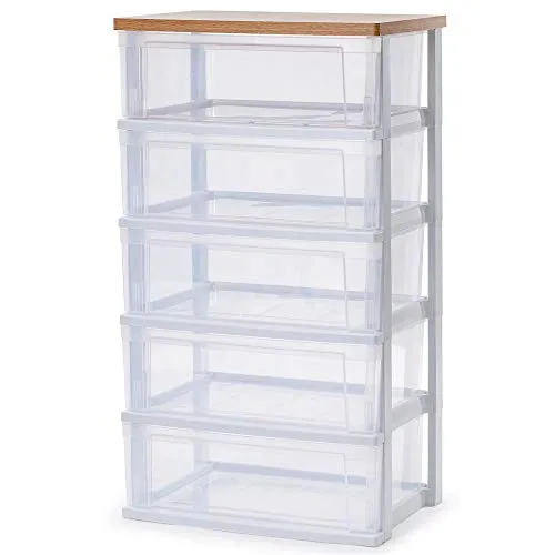 アイリスオーヤマ チェスト ワイド 5段 日本製 簡単組み立て 幅54.5×奥行き39.1 フレンチオーク木天板