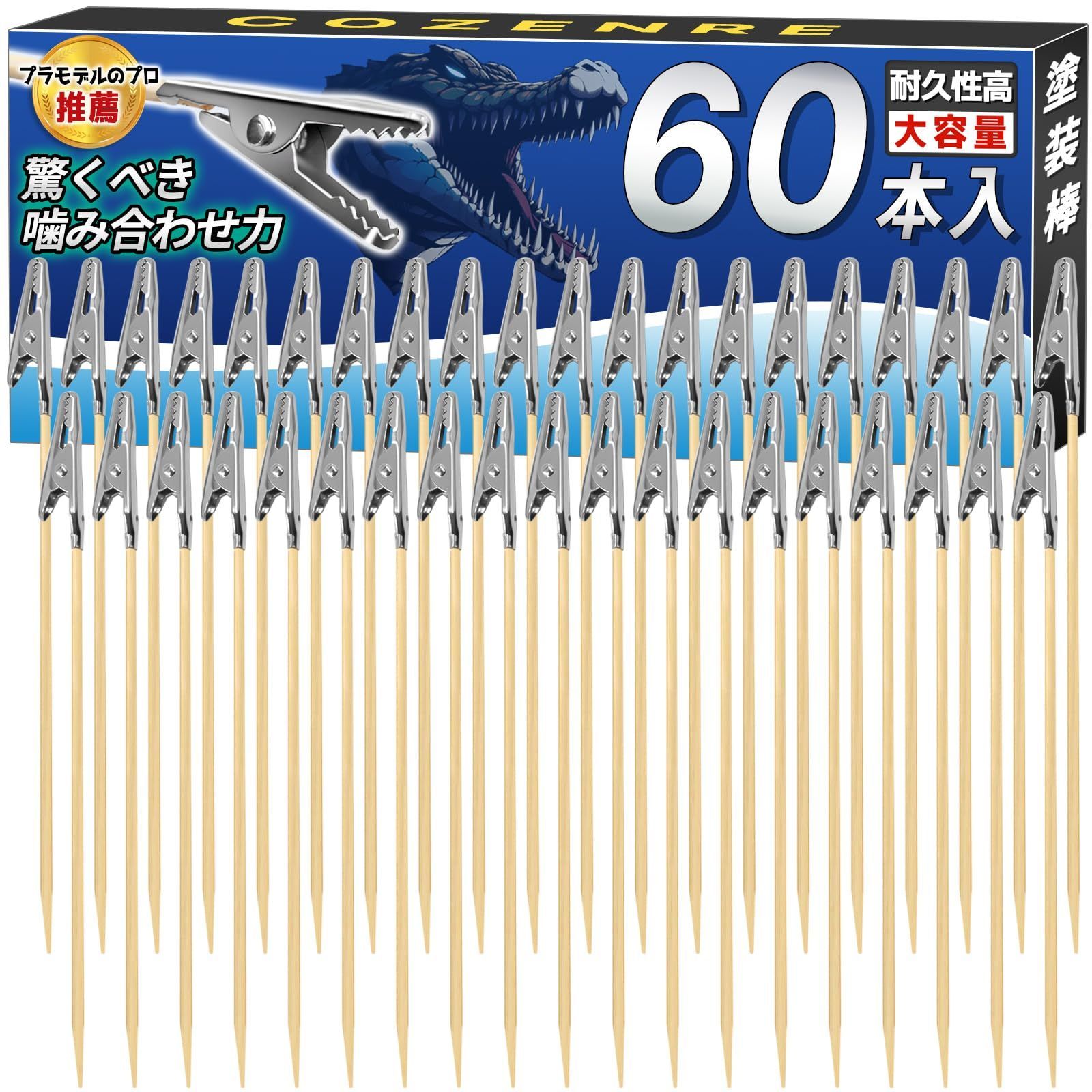 COZENRE 塗装棒 手持ち手棒 60本セット 持ち手棒 プラモデル 塗装ベース ホビー用塗用具 クリップ 塗装セット 組み立て済み ペインティング クリップ DIYに最適な塗装ブラシセット