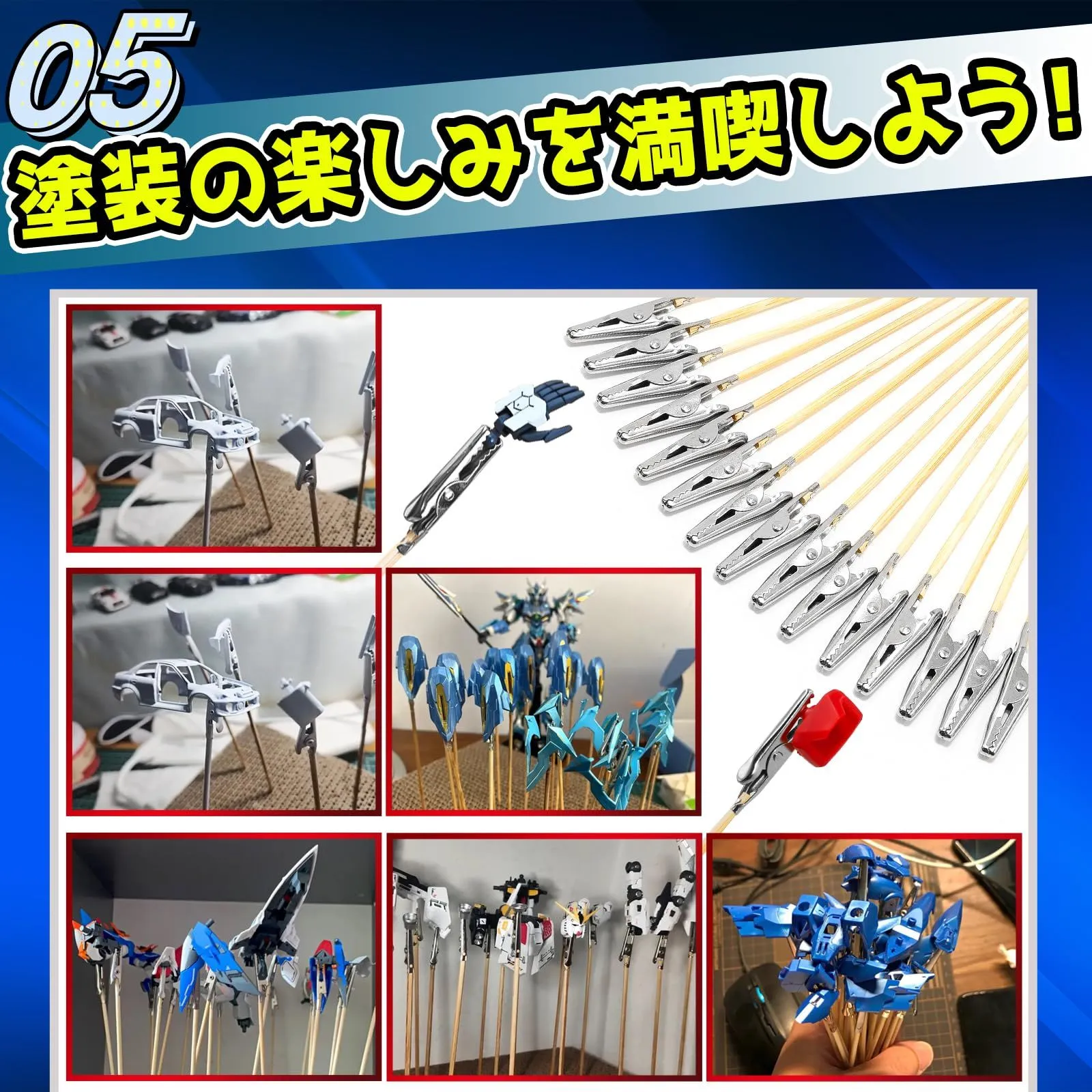 高品質な素材:手持ち手棒の持ち手の先端には、金属製クリップが固定されています。この塗装 クリップは、パーツをしっかりと捉えることができ、塗装や乾燥作業をサポートしま。優れた技術と合理的なデザインで作られており、優れた実用性と耐久性を備えています