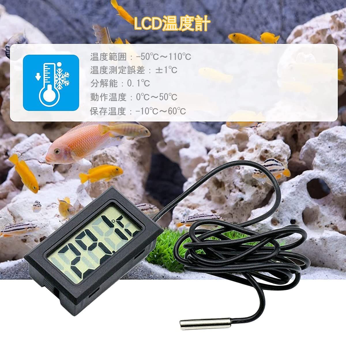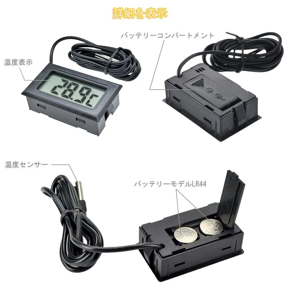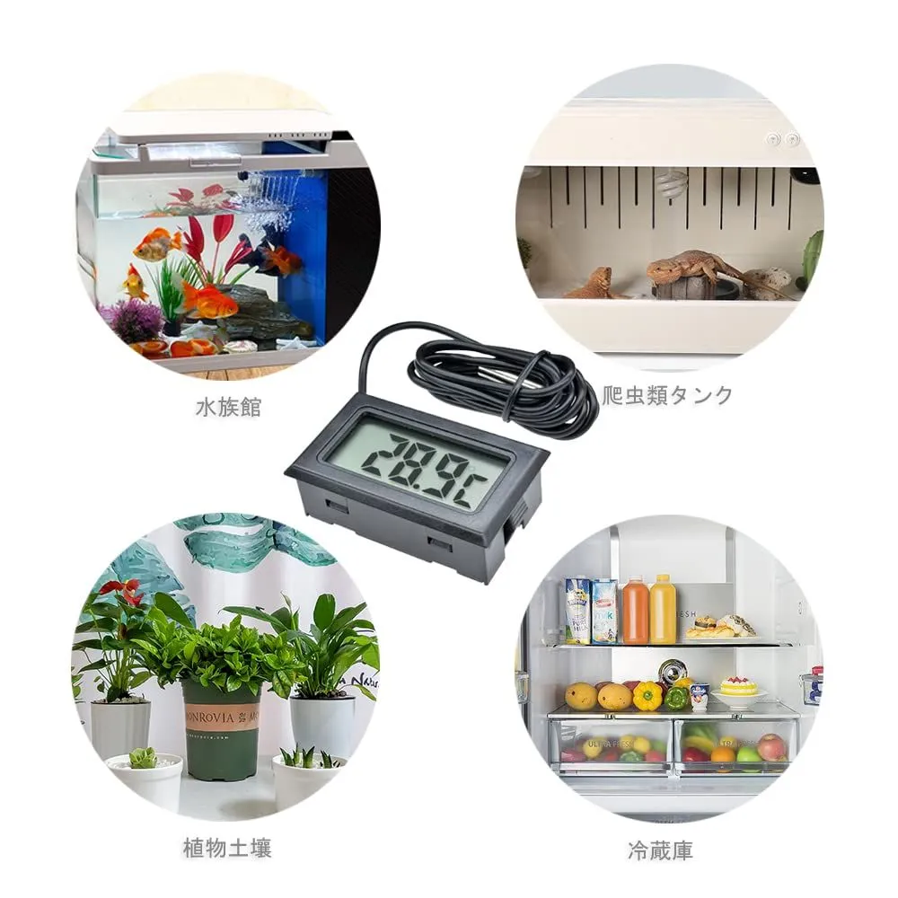 小型 簡単便利 温度計 栽培用 水族館 爬虫類 2個セット 魚タンク 冷蔵庫 防水温度プローブ 温度モニター (ブラック) -50℃~110℃ LCDデジタル温度計 サムコス