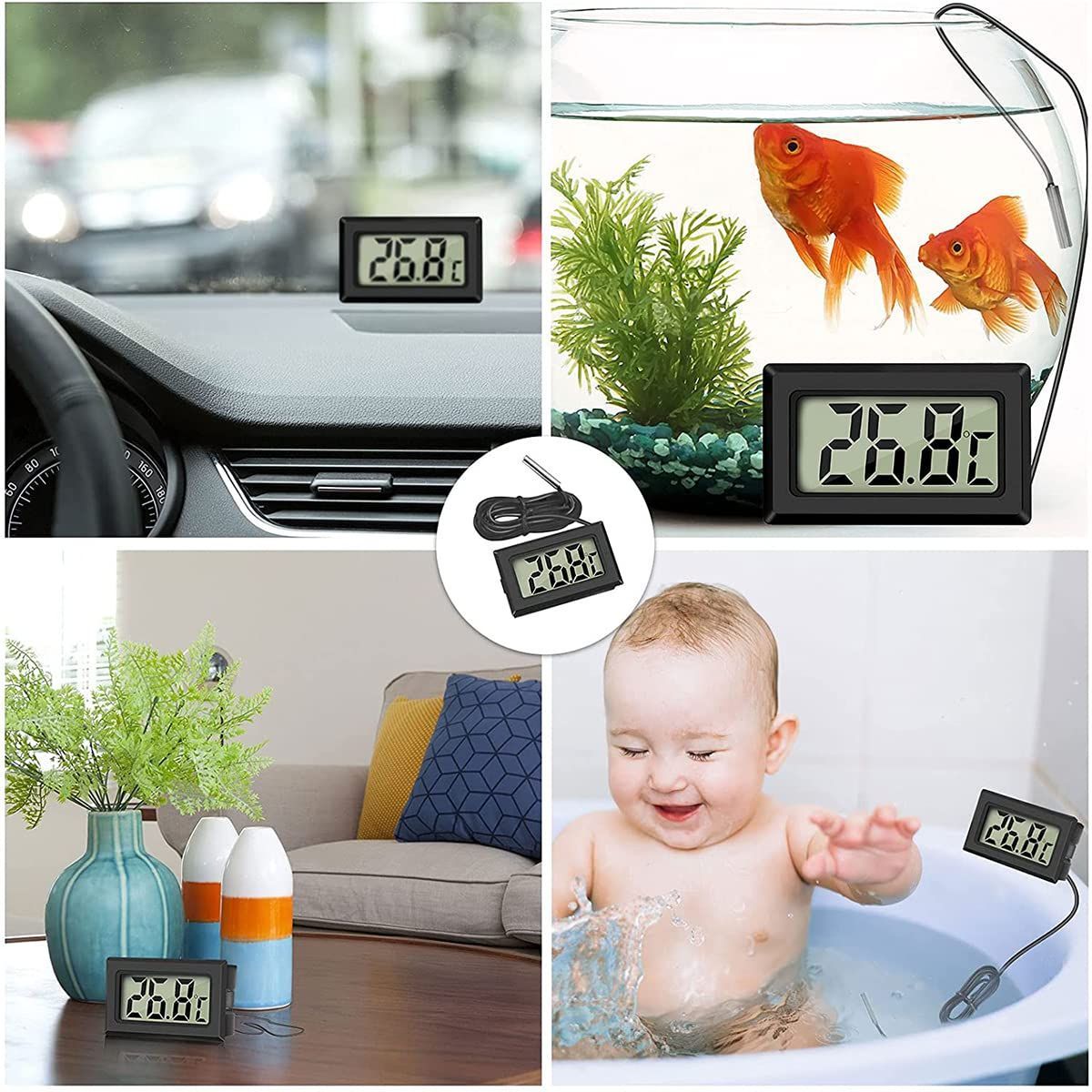 サムコス LCDデジタル温度計 -50℃~110℃ 温度モニター 防水温度プローブ 冷蔵庫 魚タンク 爬虫類 水族館 栽培用 温度計 小型 簡単便利 2個セット (ブラック)