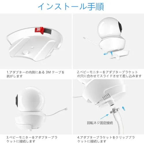 完璧な視野角を得る: - ベビーカメラをどこにでも取り付けることができます。赤ちゃんのベビーベッドなどに簡単に取り付けられます。移動や調整が可能です。