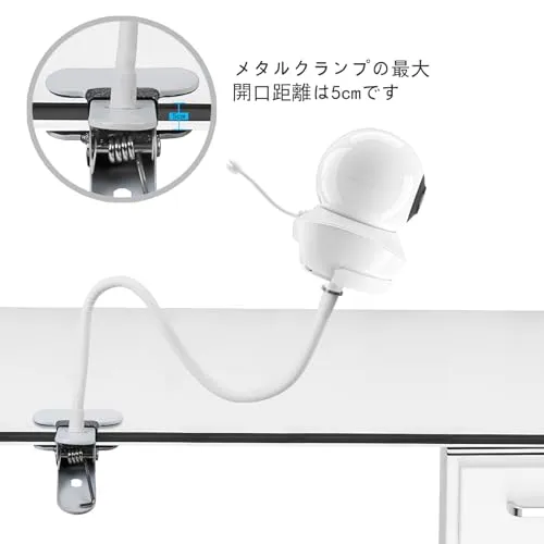 クランプが簡単:メタルクランプは、厚さ5センチまでの表面まで調整できます。 グースネックアームの長さは40センチです。 フラットパネル、木製ボード、ベビーベッド、軒先、家具、手すり、備品などに取り付けるのに最適です。 取り付けと取り外しは簡単です。ネジやドリルは不要、工具不要、壁への損傷も発生しません。