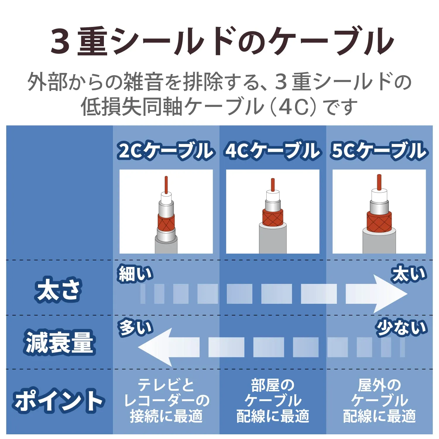 ■低損失4Cケーブル使用。