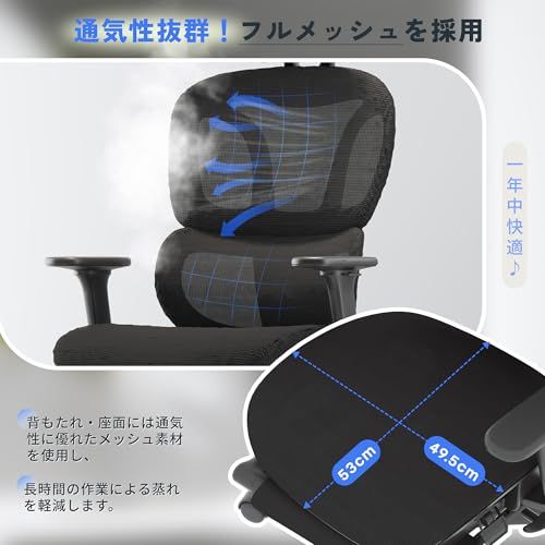 FLEXISPOT オフィスチェア デスクチェア C7 人間工学 エルゴノミクスチェア メッシュチェア 独立型ランバーサポート リクライニング可能 シンクロロッキング 座面奥行調整可能 2Dヘッドレスト 4Dアームレスト フットレスト付き (C7 Lite,/