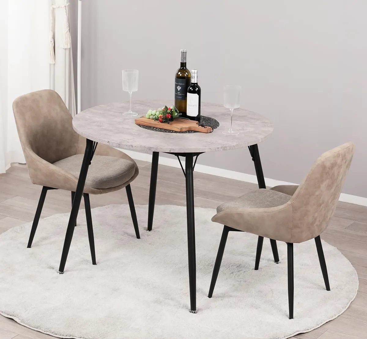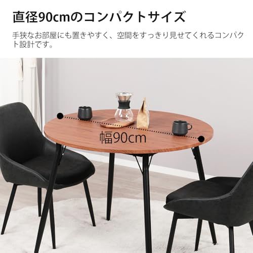 Mirai-Show ダイニングテーブルセット 2人用 北欧 3点セット 丸 90cm幅 2人掛け ダイニングチェア 2脚セット おしゃれ カフェテーブルセット 90センチ 円形 円卓 二人用 椅子 食卓テーブル 木目調 大理石風 コンパクト Entoエント/
