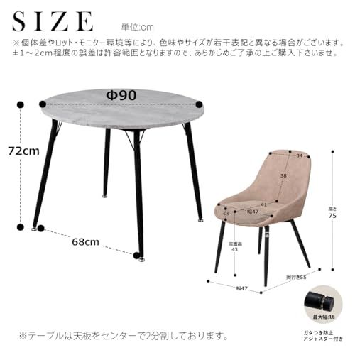 サイズ(約):《テーブル》幅90奥行90高さ72cm《チェア》幅47奥行55高さ75cm (座面高)43cm
