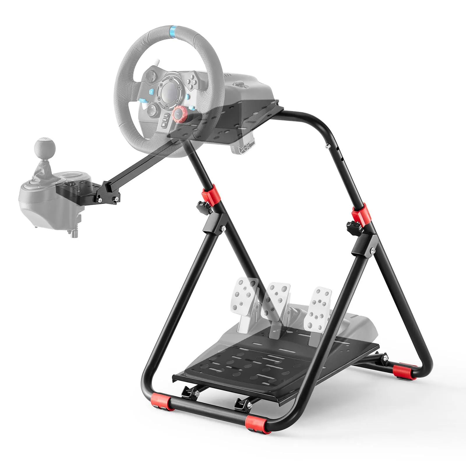 【高さと角度調節可能】レーシングホイールスタンドは、120の角度調整機能を備え、ホイールの高さも自在に調節できます。変速レバーは左右どちらにも取り付け可能で、どんな椅子でもぴったりフィット。快適なドライビング体験を提供し、ゲームの没入感を一層高めます。 ハンドル、ペダル、ギアは含まれていませんので注意してください
