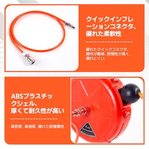 【サイズ】エアドラムホースリールは25cmで、ホースの長さは10メートルで、さまざまな用途に十分な長さです。