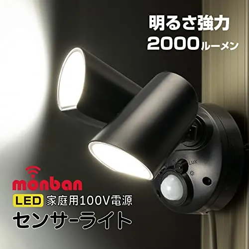 オーム(OHM) monban LEDセンサーライト 屋外用 人感センサー 自動点灯 2灯 防犯 自動点灯 消灯 ガーデン 庭 玄関 駐車場 オーム電機 LS-AS2000K4-K 06-4288★tm