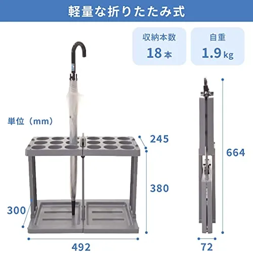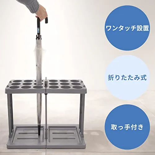 KAWAJUN (カワジュン) 傘立て 折りたたみ式 業務用 [18本]樹脂製 ( グレー/軽量/日本製/高耐久 ) カサスタンド18 LCA001/