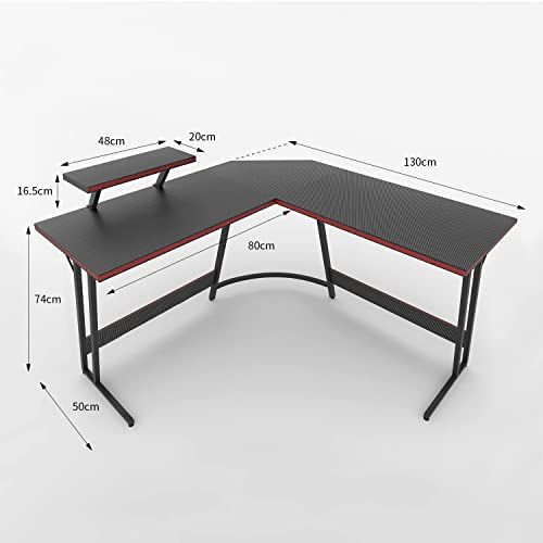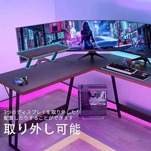 Victone ゲーミングデスク L字型デスク「メーカー2年保証」 幅130cm*130cm*74cm 机 PCですく パソコンですく ゲームデスク 組み立て簡単 安定性 一人暮らし L字 コーナー 作業机 取外し可能なモニター台付き 省スペース おしゃれ /