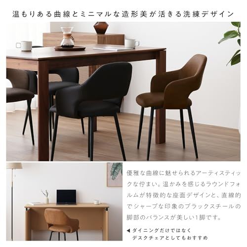 【空間が引き締まるスリムなブラックスチール】脚部にはツヤを抑えた上品な質感のブラックスチール素材を採用。ブラックスチールのやや無骨な素材感とスリムなシルエットが、シックなPUレザーとラウンドフォルムの座面部を引き立たせます。このダイニングチェアは調節可能な脚をデザインしています、安心して使えるダイニングチェアです。スマートな印象のスチール脚は、空間にメリハリを作りスタイリッシュに仕上げます。