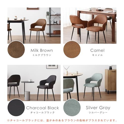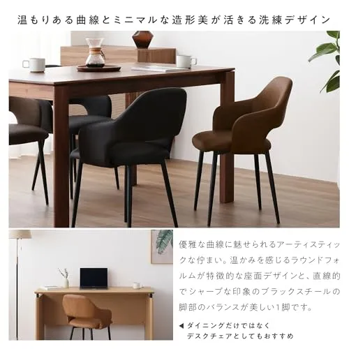 【体を包むような座り心地を生み出す緩やかなカーブ】 緩やかなカーブの背面と座面のフィット感で、まるで体を包み込まれているような感覚にさせるダイニングチェア。座ると自然と腕が添えられるアームレスト付きで、より深くリラックス感を高めてくれます。長さを抑えたハーフアームなのでテーブルの出入りがしやすく、立ち座りの際に邪魔になりにくいのも嬉しいポイント。