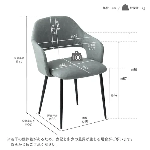 VENTOTA ダイニングチェア 単品 肘付き 椅子ダイニング PUレザー クッション座面 スチール脚 北欧 ヴィンテージ シンプル モダン 食卓椅子 疲れにくい おしゃれ リビング レストラン カフェ Rocio SGY/