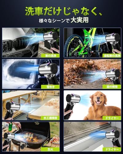 【300,000 回転/分の超高速ブラシレスモーター 、1.8kg の物を吹き飛ばせるパワー】Semtyait強力洗車ブロワーは超高回転モーター、圧倒的な風力を発揮。10cm の距離から、最大 1.8kg(1800g)の物を吹き飛ばせる実力を持つ。台風級の暴風にも似た力で、洗車の際、水滴一瞬で弾け飛び、乾ききるため、拭き上げが一切不要!時間短縮で、ラクラクに洗車体験をアップグラド,あなたの洗車が一新されます。だから、積雪の除雪もらくちん!