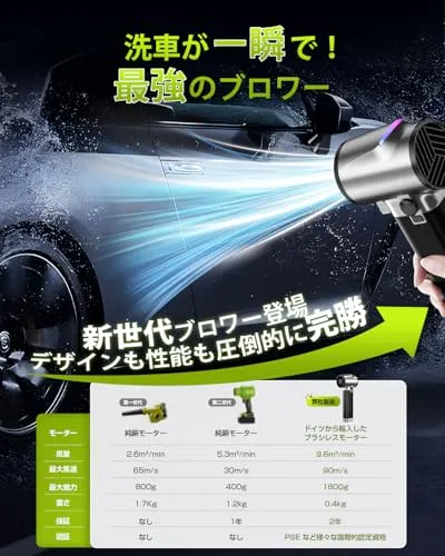 ブロワー 強力 洗車【1800g超強推力・160m/s圧倒的な風速】エアダスター【ドイツ レッド?ドット賞受賞ブランド】Semtyait日本企業 日本ブランド 無段階風量調整 16000mAh BMS高性能電池 充電式 軽量小型ブロワー 電動エアダスター 低/