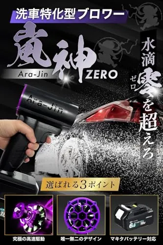 嵐神 ZERO 最強 ブロワー 洗車 超強力ターボファン ブラシレスモーター マキタ MAKITA バッテリー対応 18V ハードケース付属 ARAJIN き/