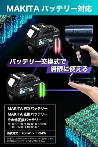 【 MAKITAバッテリー対応 】18V21V及び46Ahのバッテリーをご使用ください。BL1815N BL1820B BL1830B BL1850B BL1860B など。