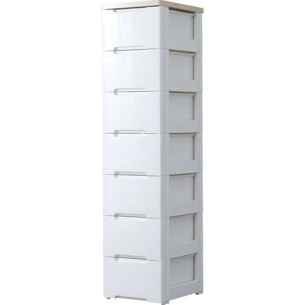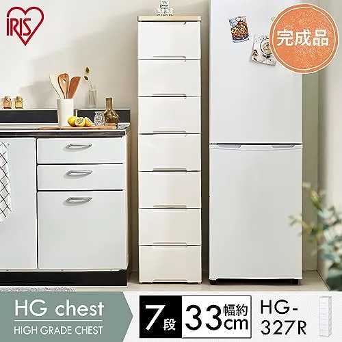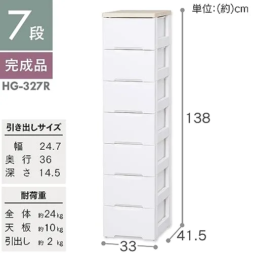 アイリスオーヤマ チェスト ラクラク引出し 木天板 7段 幅32.4×奥行41×高さ138cm ホワイト / ナチュラル 白 プラスチック HG-327R/