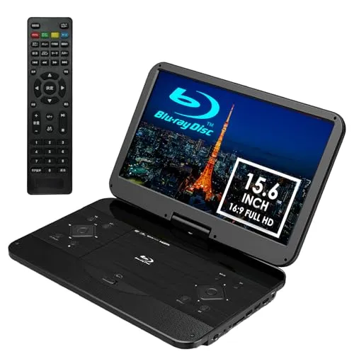15.6インチ ポータブルブルーレイディスクプレーヤー 充電バッテリー搭載/