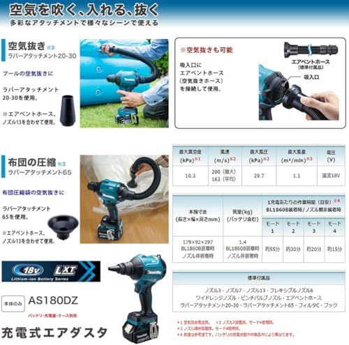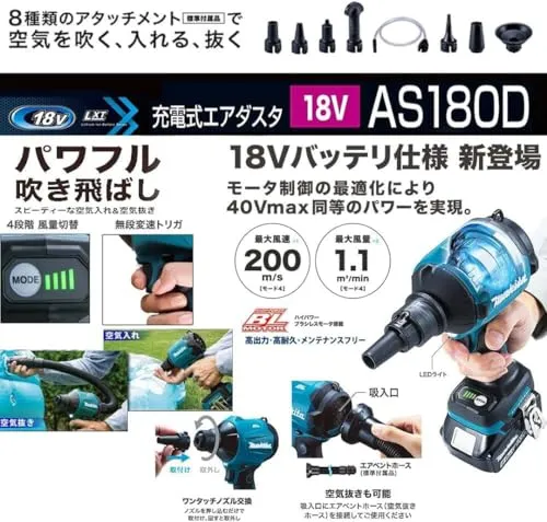 マキタ18V用充電式エアダスタ AS180DZ(本体のみ) バッテリ・充電器別売 SHIBASHO 国内正規品 (柴商アクセサリバッグサービス)/