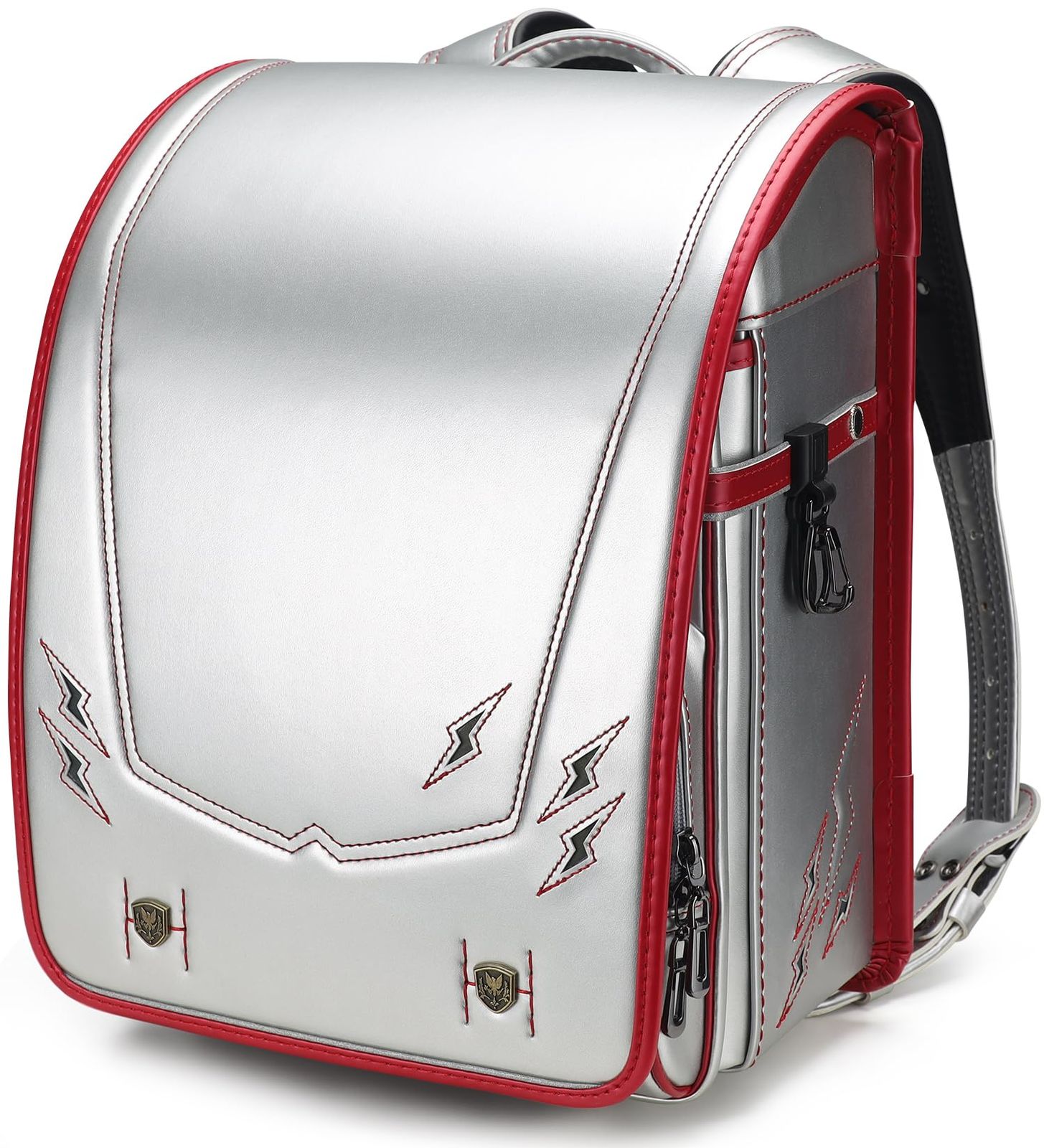 [バオバブの願い] 強化レーザー イナズマ ランドセル 男の子 2025年 ワンタッチロック ブラック 軽量 かっこいい スポーツ感 A4フラットファイル対応 大容量 japanese schoolbag babr-2206t(シルバー×レッド)/