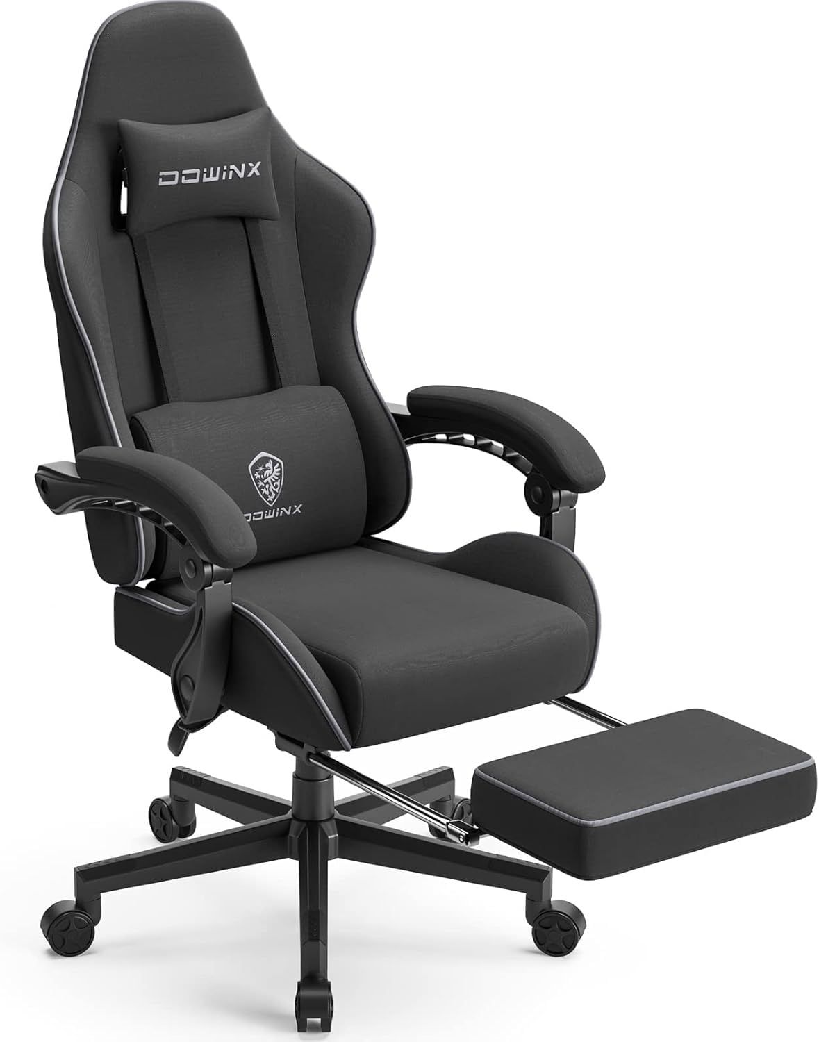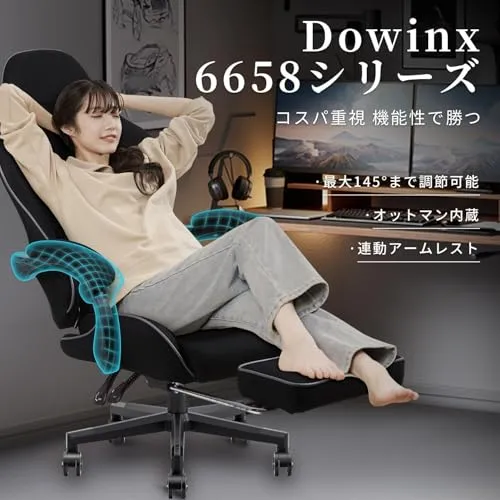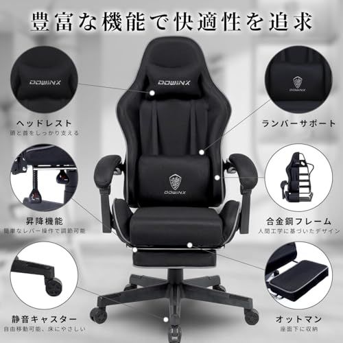 【新生活特典】Dowinx ゲーミングチェア ファブリック 通気性 145°リクライニング オットマン付き ポケットコイル オフィスチェア 椅子 テレワーク 疲れない デスクチェア パソコンチェア イス 布張り pcチェア ブラック LS-665801GM/