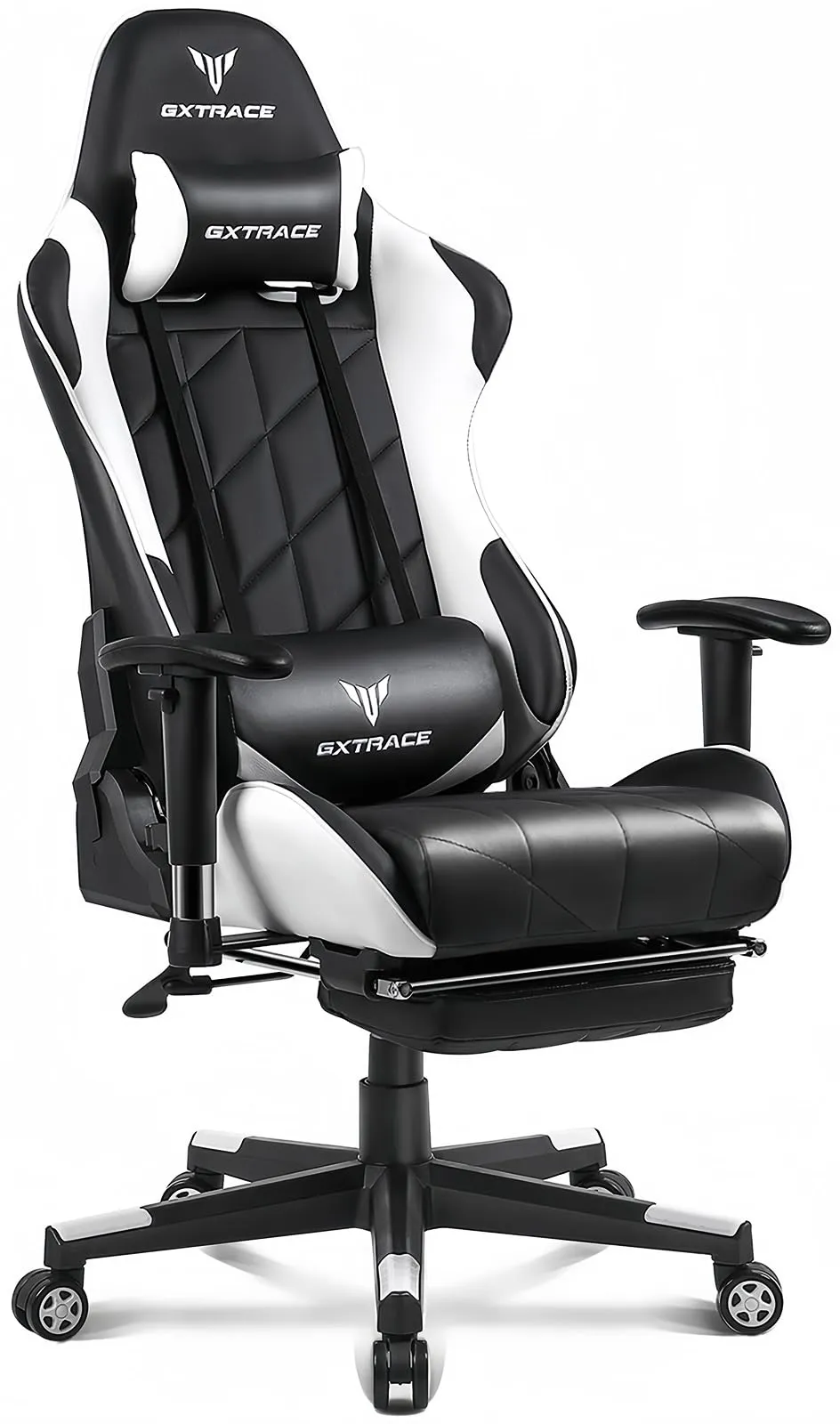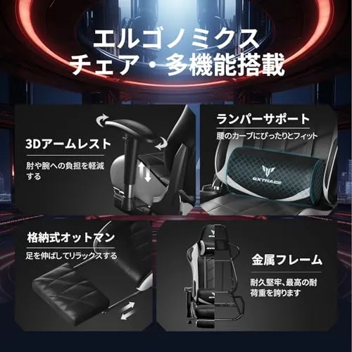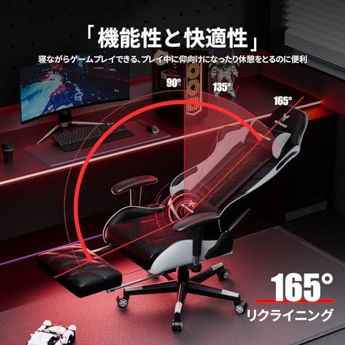 GXTRACE ゲーミングチェア ゲームチェア オットマン付き オフィスチェア 人間工学 165度 リクライニング ハイバック テレワーク 椅子 PCチェア (White)/