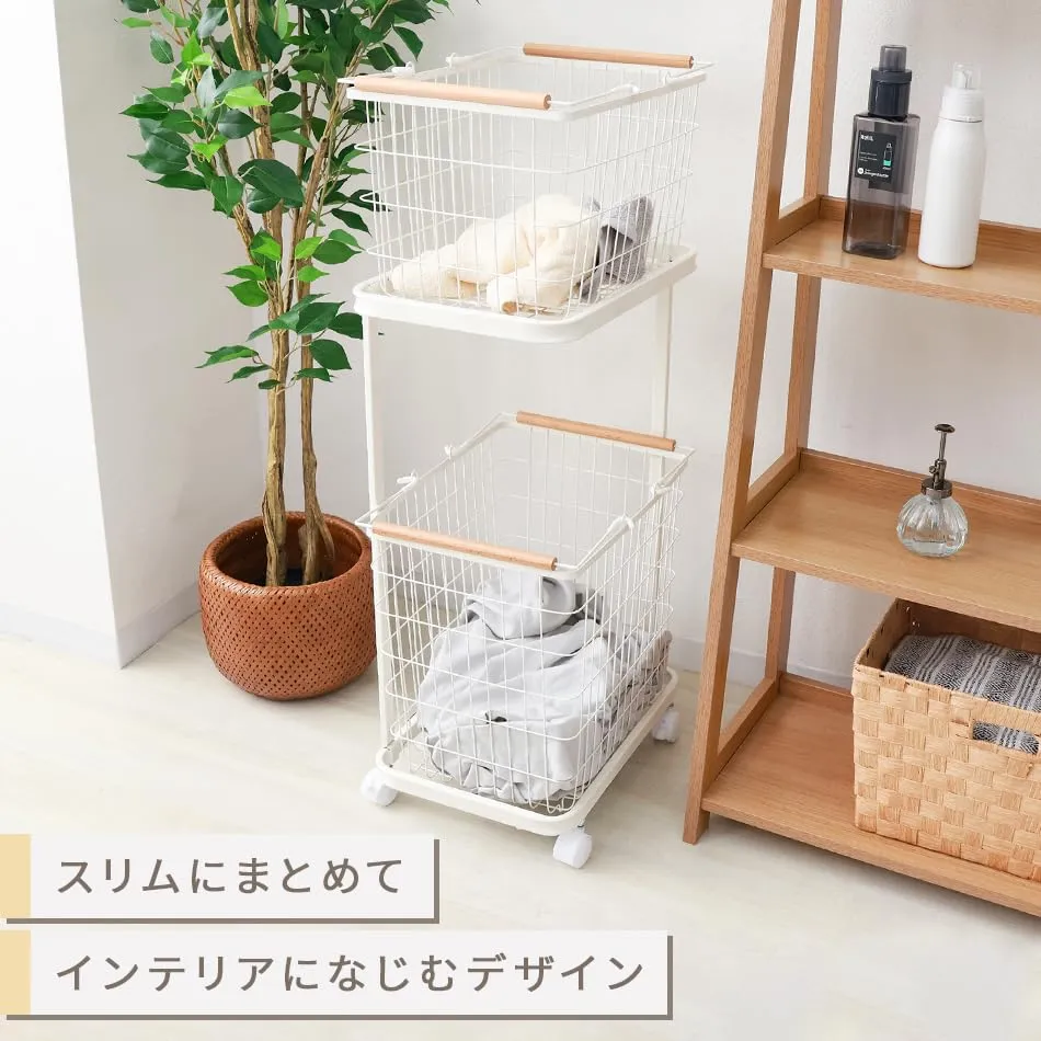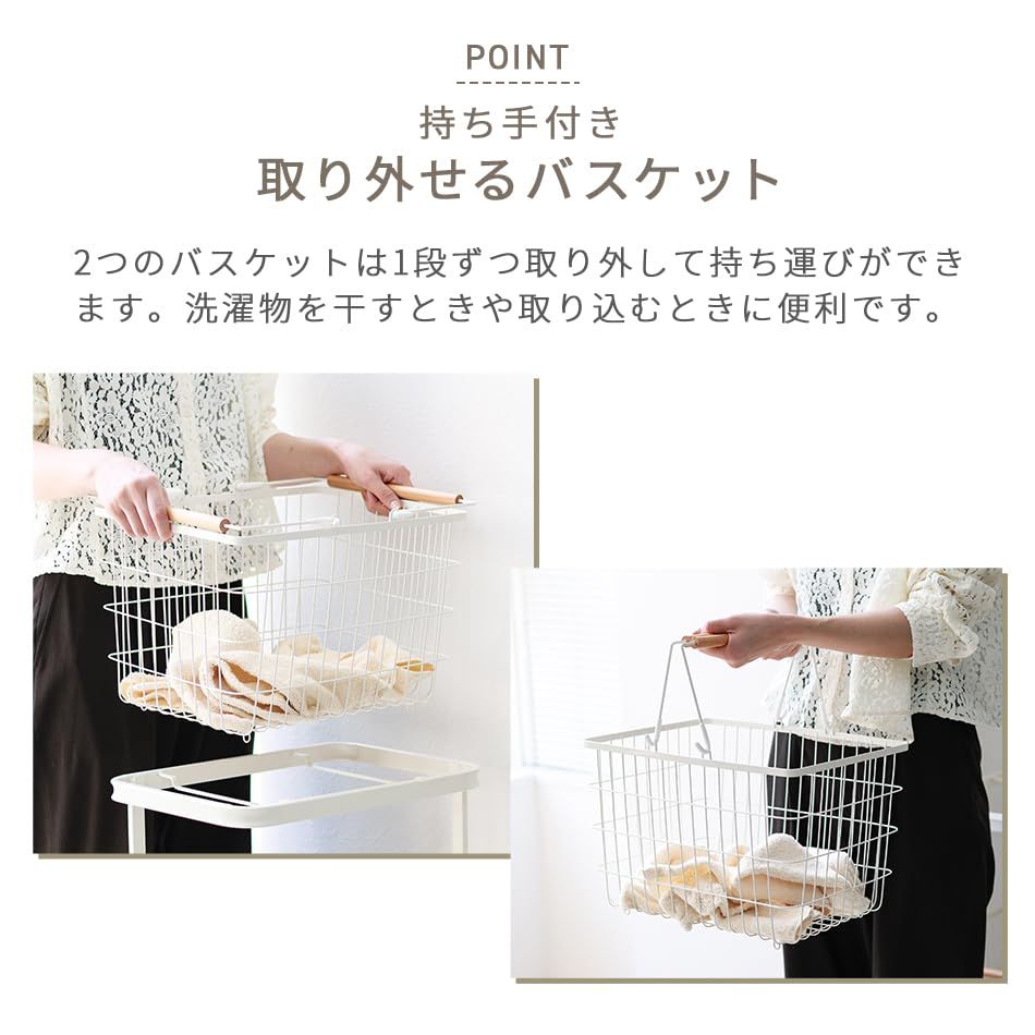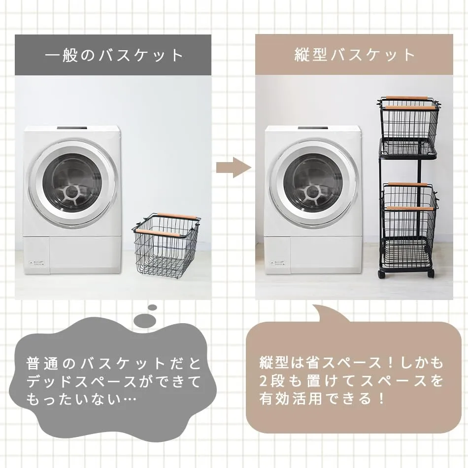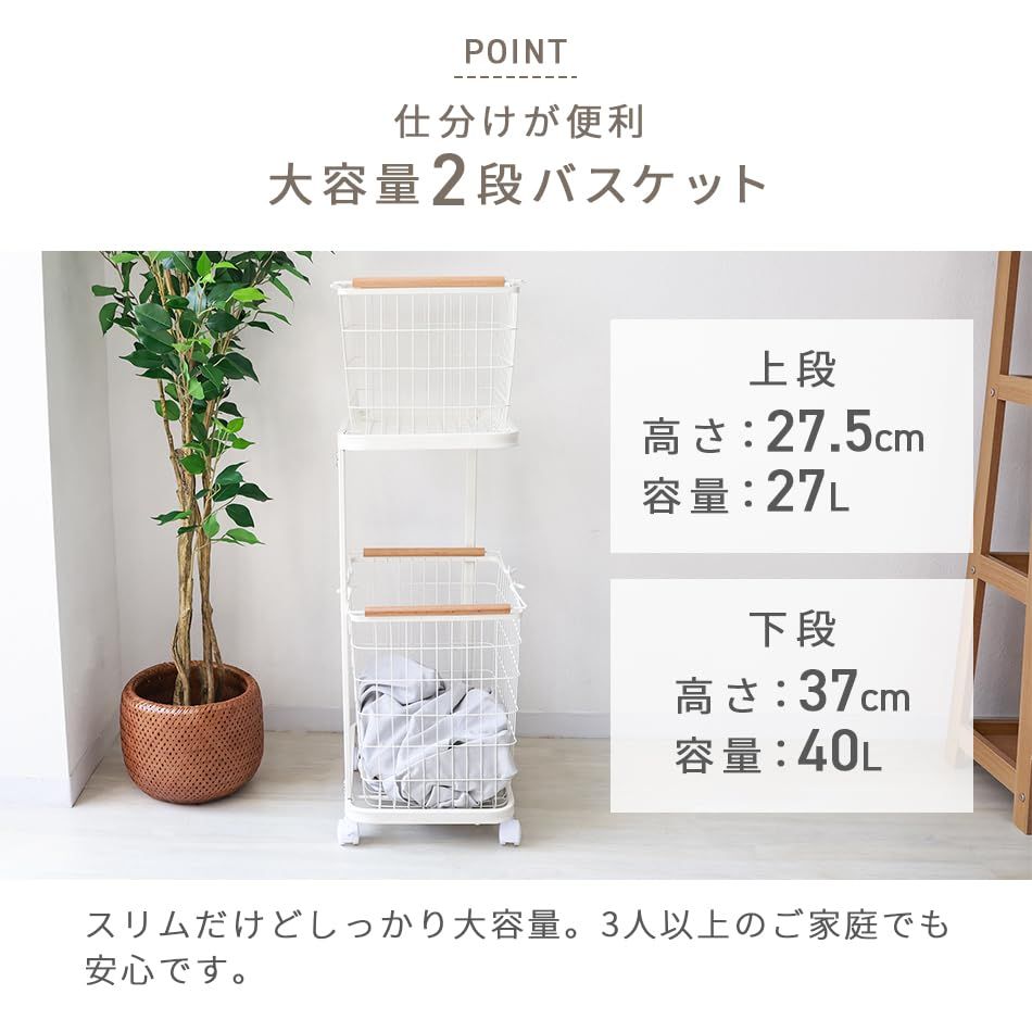 【67L大容量なのに省スペース】縦型でスリム設計なので限られたスペースでも大容量を実現!2つのバスケットに洗濯物を分別することができます。