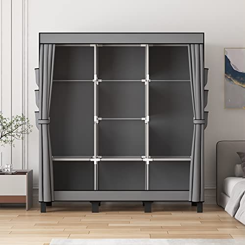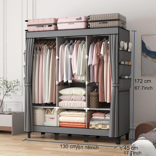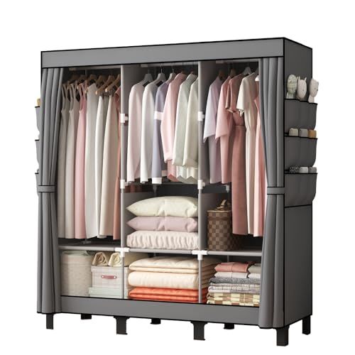簡易ポータブル組立クローゼット 防湿・防塵・防カビの不織布クローゼット寮寝室服収納キャビネット多層収納整理キャビネット、簡易ワードローブ. (グレー, 130cm 幅)