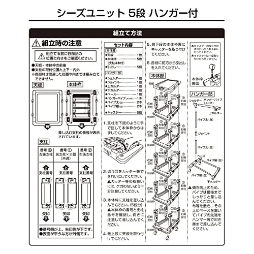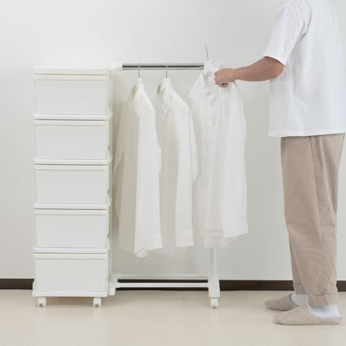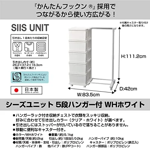 JEJアステージ(JEJ Astage) JEJアステージ 収納ケース シーズユニット5段ハンガー付 ホワイト 簡単組立 日本製 幅83.5×奥行42×高さ111.2cm