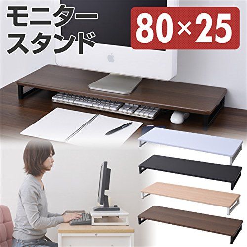 山善(YAMAZEN) モニター台 幅80×奥行25×高さ8cm キーボード収納 PC台 組立かんたん ココアブラウン/ブラック DTS-8025(CCBBK) 在宅勤務