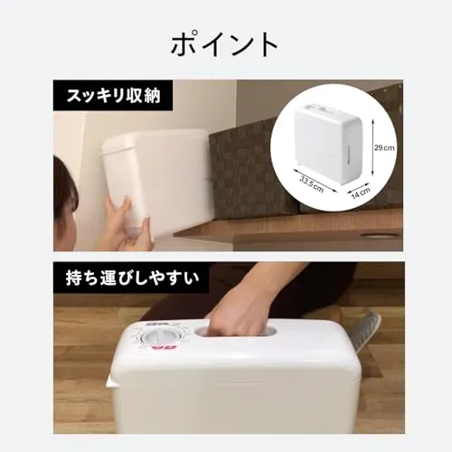 【靴乾燥用アタッチメント付】お子さまの運動靴や上履き、革靴などの乾燥を助けます。 消費電力:550W タイマー:120分 コード長:約2m 製品サイズ:33.514.029.0cm