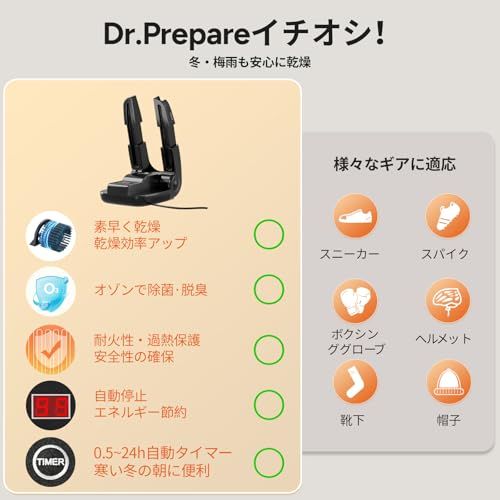 DR.PREPARE 靴乾燥機 シューズ乾燥機 靴脱臭機 消臭 オゾン 折り畳み式 3段階伸縮調整 タイマー機能 シューズドライヤー スキーブーツ/スニーカー/革靴/長靴/靴下/グローブなどに対応 PSE認証済み 日本語取扱説明書付