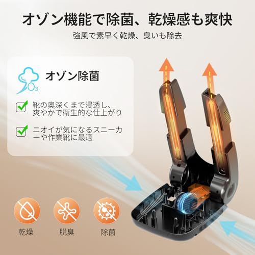 【脱臭・乾燥で1台3役】40~50Cでの一定の最適な熱循環により、靴から湿気を早速に取り除くように設計されています。 革新的なオゾン脱臭機能(選択可能、1回で20分間に連続使用)を備えたため、 この一台3役のくつ乾燥機は、汗によって生まれた臭いを効果的に排除し、靴の快適さと清潔さを早速に回復されました。それに、乾燥機は動作している際に、高温やオゾン脱臭機能のおかけて、スポーツ好き、部活が多い学生、子供たちなどに最適な装備です。