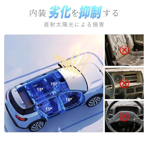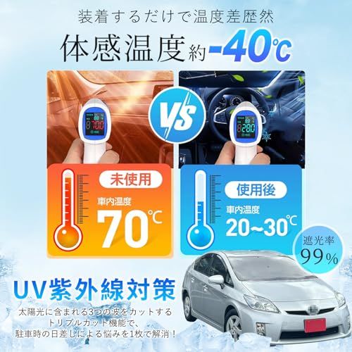 【オリジナルフィットシェイプ】 フロントガラスの形にピッタリフィットするオリジナルシェイプで、周囲の隙間を最大限に減少させ、光線カット効率がさらに向上!