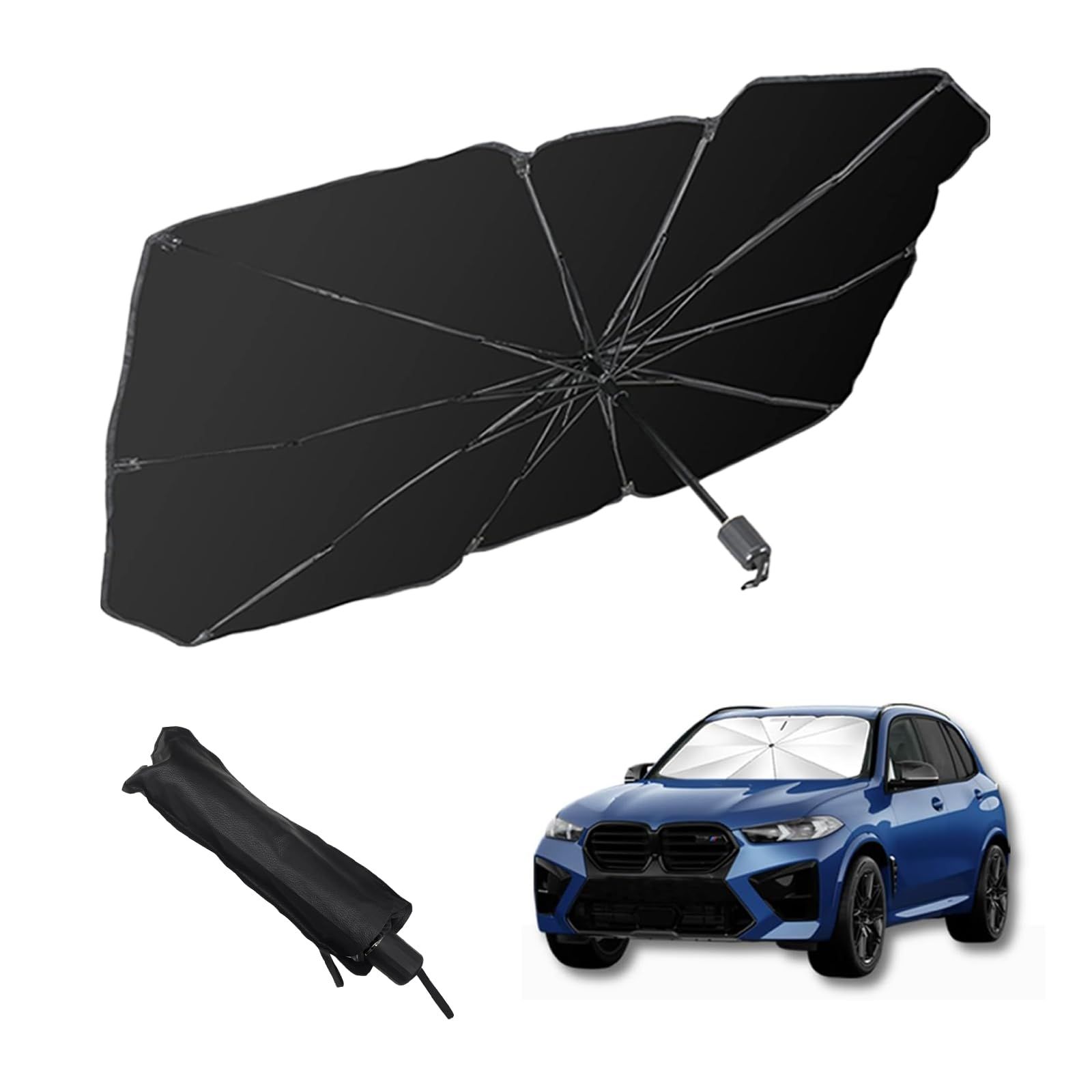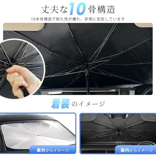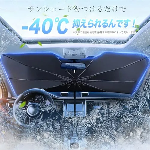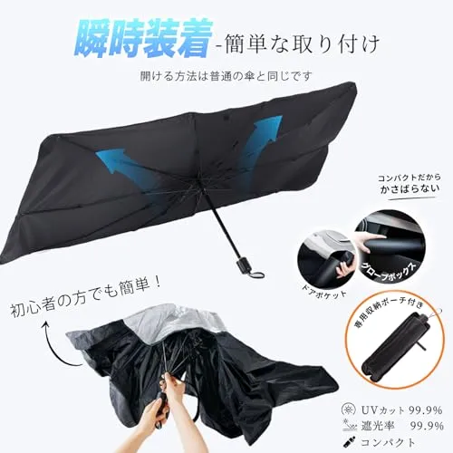 一木良品【傘型・車用フロントサンシェード】軽自動車対応 フロントガラス用 日よけ 遮光 UVカット 紫外線対策 遮熱 断熱 車内高温防止 車中泊グッズ 折りたたみ式 カー用品 簡単収納 コンパクト (Lサイズ)