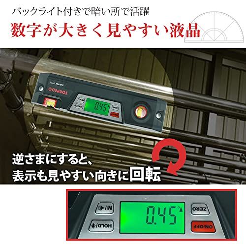 デジタル 水平器 強力 マグネット 水準器 0.05度単位 バックライト付き 角度計