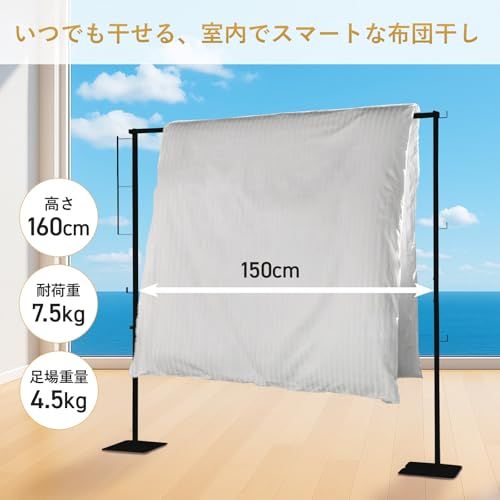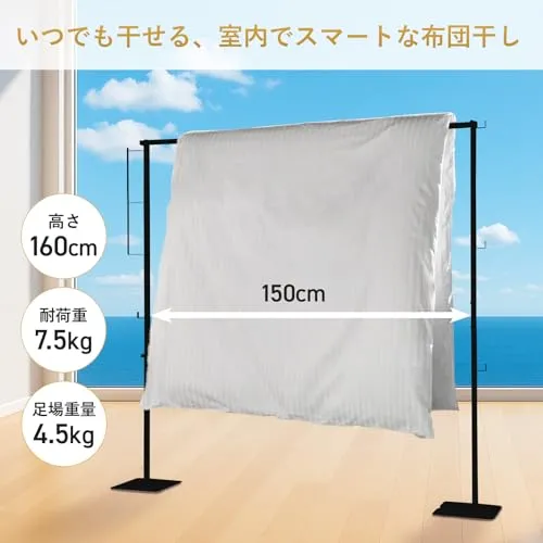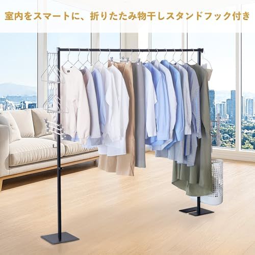【安定性重視】高品質な強化スチール製で作られており、足場は2525cmの正方形盤で、2つ合わせて4.5kgの重量があります。しっかりと固定された状態で安定した物干しが行えます。折りたたみ式でコンパクトに収納でき、使わない時は省スペースに変化。また洗濯ハンガー、ピンチハンガーをしっかり支え、大容量の衣類やタオル、布団干しにも対応可能です。