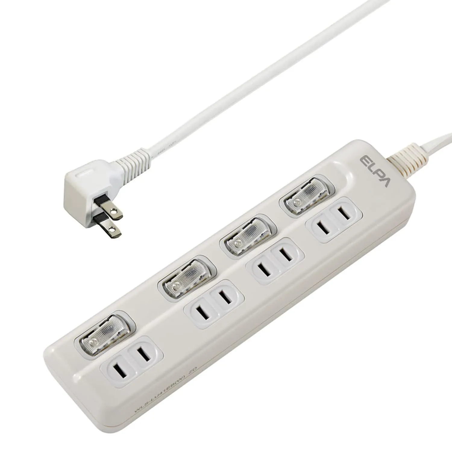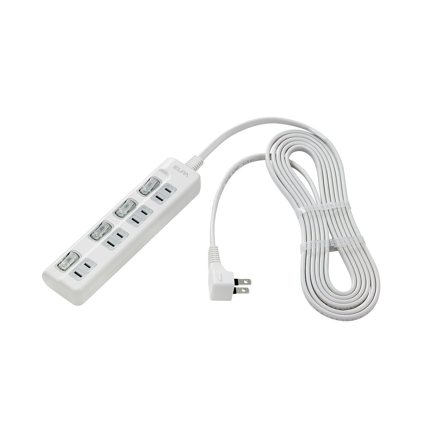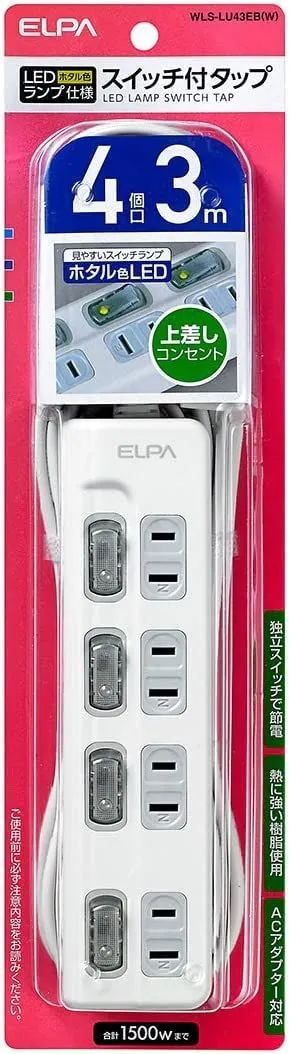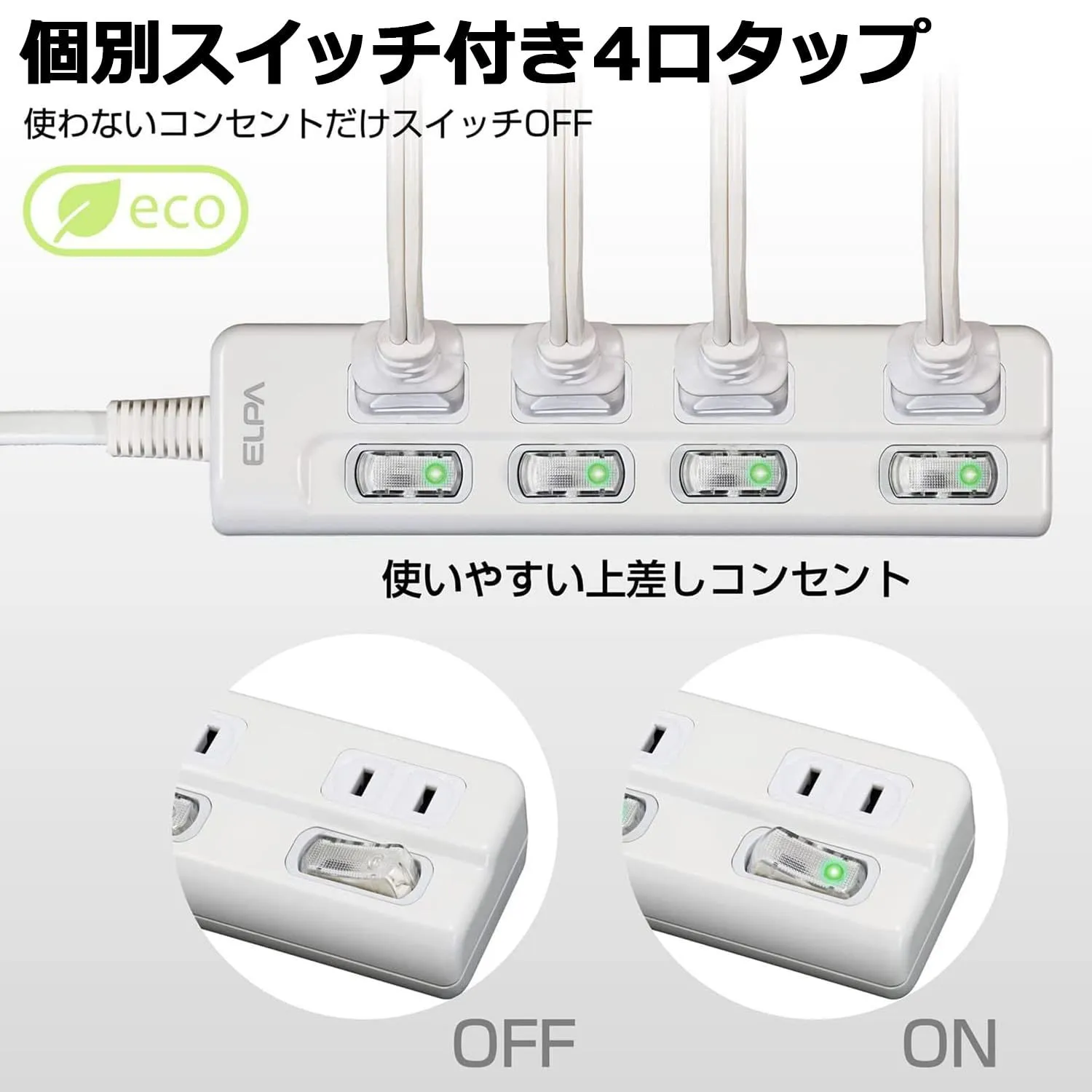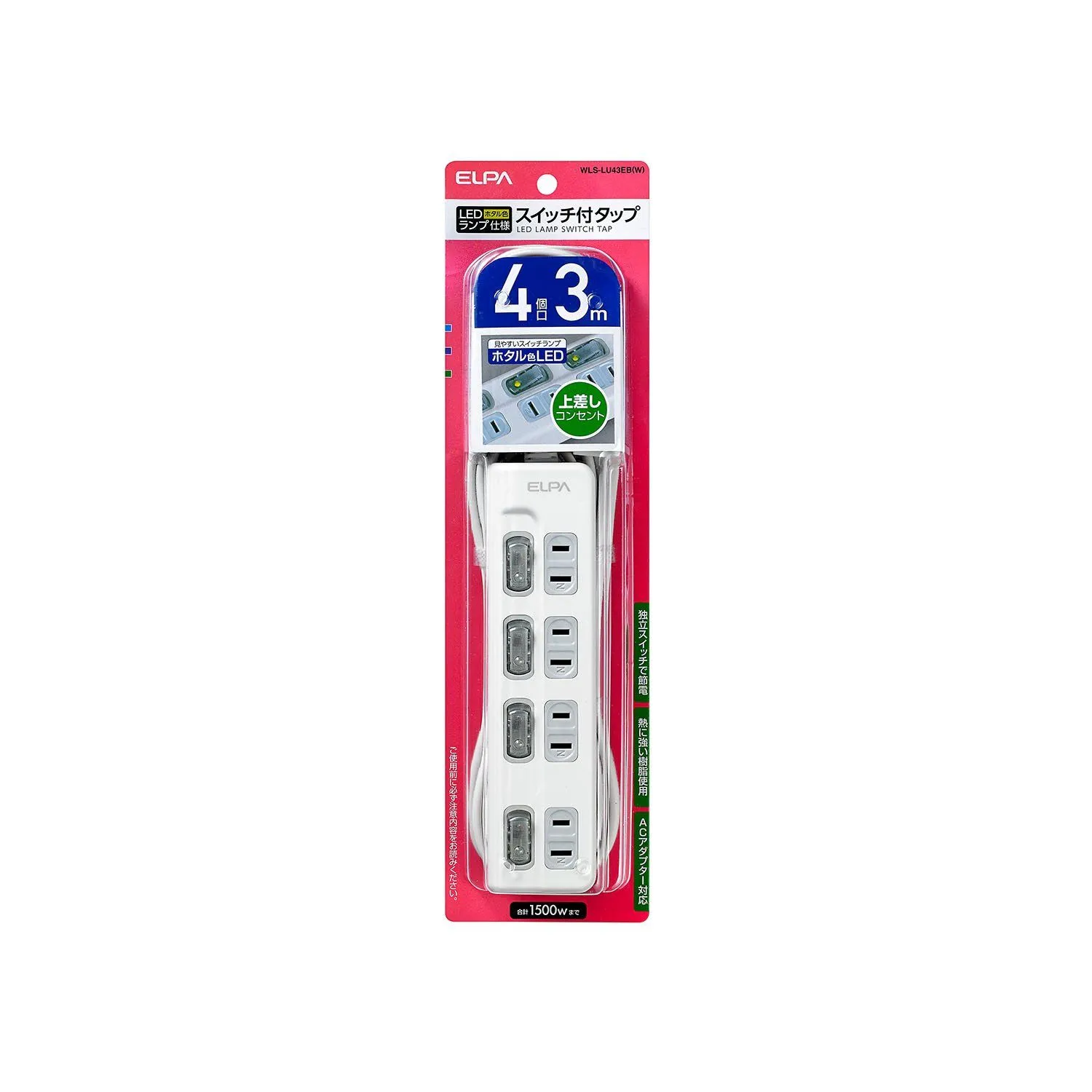 上差し LED 4個口 延長コード 3m コンセント スイッチ付タップ WLS-LU43EB(W) エルパ(ELPA)