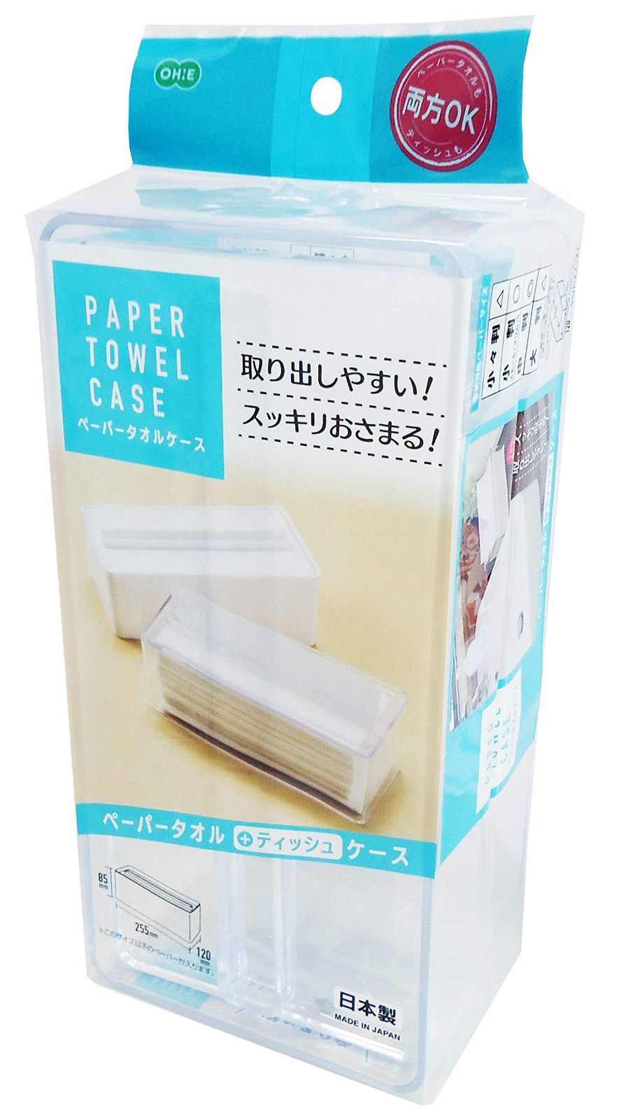 オーエ ペーパータオルケース クリア 縦26.5cm×横12.5cm×高さ9.5cm ティッシュケース 取り出しやすい スッキリおさまる 日本製