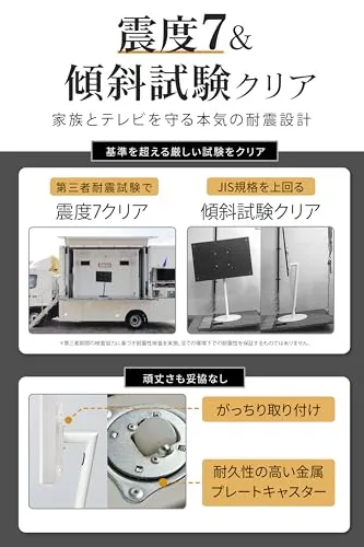 【震度7での耐震試験済み】震度7・阪神淡路大震災を再現した起震車試験を実施。80kgダミーテレビ・耐震金具なしで試験をしたところWALL INTERIOR TV STANDには転倒は見られませんでした。※自社基準に基づき耐震性を実証しています。すべての環境での耐震性を保証するものではありません。
