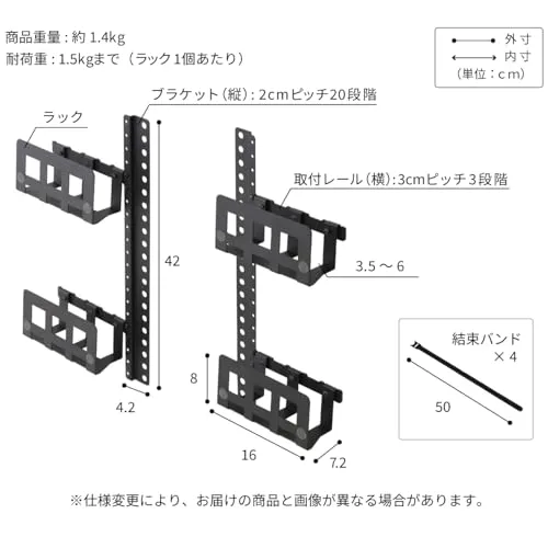 【サイズ】[ラック1個]幅16x奥行7.2x高さ8cm・商品重量:約1.4kg・耐荷重:約1.5kg(ラック1個あたり)
