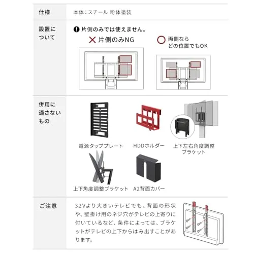 テレビスタンド「WALL TV STAND V4」「WALL TV STAND V3」「WALL TV STAND V2」「WALL TV STAND S1」「WALL TV STAND A2 ラージタイプ」「WALL TV STAND PRO」専用オプション